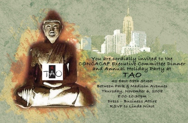 Three strikes and you're out. Here Kerri-Ann Alleyne Marcelle, Doris Fernandez and Linda Nihot struck out Yankee's star relief pitcher Mariano Rivera's security guys to permit his to take this special photo with end year party revelers at the CONCACAF party and dinner for the Executive Committee. One hundred and twenty two guests dined on the delicious Asian cuisine of TAO, a perennial New York hot spot.